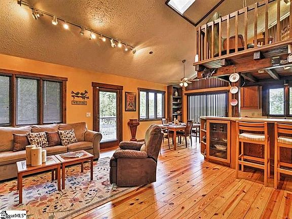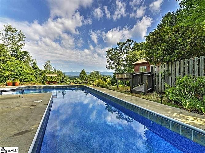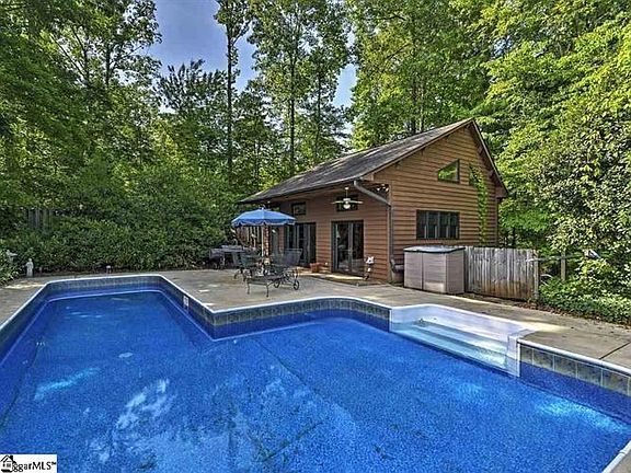 Escape from the hustle and bustle of city life in this 3-bedroom, 2-bathroom Marietta house. A beautiful income property -- with the ability to sleep 12 -- located close enough to activities yet far enough to find peace and tranquility. This residence is surrounded by magnificent forest and mountain scenery! Upon arrival, driving up to the house on the expansive driveway, you'll notice the towering trees and lush vegetation that create your own private sanctuary, giving you the utmost privacy. The brand new 40-foot wrap around deck offers sensational views that will inspire creativity for all of your artistic endeavors. Look forward to spending lazy days lounging by the private pool with your favorite beverage in hand. At night, watch the sun slowly fade behind the mountains, leaving behind colorful streaks of light. Step inside to encounter 1, 362 square feet of handsome living space, which features lovely hardwood floors, charming decorations, and comfortable furnishings. The pool house offers you another 580 square feet of living space with its own loft with queen bed and separate living area with sofa and TV; as well as a full bathroom, laundry room, and fully equipped kitchen. With fantastic amenities such as air conditioning, central heating, cozy linens, wireless internet access, 2 TV's, and a writing desk in both the main house loft and the pool house, you may never want to leave! On cold winter nights, curl up next to the warm wood-burning stove. Create a mouthwatering meal in either of the two fully stocked kitchens, equipped with refrigerator, stove, oven, and every other tool you could possibly need to construct a masterpiece. Or you can even prepare a barbecued picnic by the pool, with all the grilling tools supplied. Most furnishings are included in price. This is a beautiful INCOME producing property!! Only 13 miles from downtown Greenville. Can hike on your own 7.5 acres down to enjoy 158 feet of the Saluda River. So many possibilities!!
