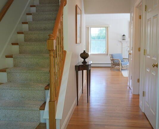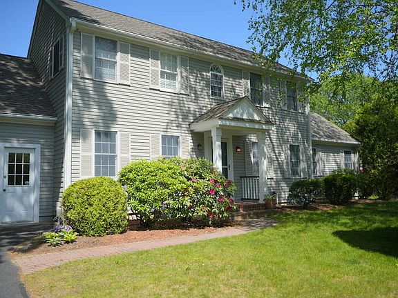 Well maintained, 3 bedroom colonial in quiet neighborhood with no thru-traffic. Living room has cathedral ceiling with balcony, access to private deck and gas fireplace. First floor master suite has large linen closet, 2 clothes closets and bathroom with double vanity, shower, separate tub, and access to the deck. Kitchen has laundry closet, large pantry and access to 2-car garage. Full basement awaits your family room dreams. The 2 2nd floor bedrooms have vaulted ceilings and large closets. Property boasts mature plantings maintained by automatic sprinkler system with convenient garden shed. Shared Tennis/Pickleball courts in park like space to be completed in July (Not an HOA, but an LLC - 28 households participating - $300 in yearly dues). Attic spaces above the garage and 2nd floor bedroom provide more storage. New roof and exterior paint 2020. New A/C system 2121. Great location with easy access to exit the cape or go further down cape. Essential shopping, restaurants and services within 10 minutes. Shared neighborhood access to river, leading to Great Pond, for small boats. Multiple beaches within minutes.