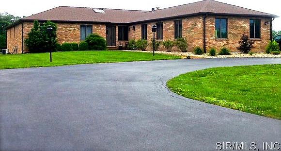 Custom executive ranch on 5 beautiful acres on shared lake. Tree lined private road with country feel while only minutes from shopping & schools. Full brick with walkout, oversized 3 car garage & circle drive. Upper and lower level entertaining spaces and plenty of room to grow! Large bay window with lake view in the open living room and kitchen. Main floor master bedroom with walk in closet, en suite, and additional sitting area with built-in shelving. Recent updates throughout, including beautiful new countertops, light fixtures, and bathroom finishes. Full finished walkout basement with custom bar & additional large spaces. Full glass doors lead out to the back patio, ready for your long relaxing evening lakeside. Large home office or bedroom area in basement with separate entrance. Central vac, hardwood floors, skylights, screened porch with brick pizza oven, walking trails and so much more! Don't miss it! Owners providing home warranty. Call for a personal tour today!