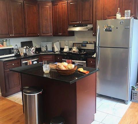 Newly Renovated open plan living room kitchen combination with Granite/SS appliances and dishwasher Large three bedroom - All will fit a queen bed- Bureau and desk- lots of windows provide a lot of light Hardwood floors Laundry in the building Back Deck Two Tandem parking spot included in rent Disclaimer: Pics are of second and third floor unit- This unit is on the first floor.
