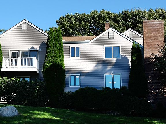 This beautiful 3 BR contemporary-style home is situated at the end of a quiet cul-de-sac in Castle Hill, walking distance to downtown Westerly & near Misquamicut Beaches. Nestled on .55 acres of professionally landscaped grounds, you'll enjoy the privacy this location offers! An open floor plan welcomes you. The sun-filled living room has a vaulted ceiling, FP, wood floor & balcony. Plenty of cabinets & counter top space in the kitchen, and a breakfast bar for quick meals. An informal dining area is located between the open kitchen & living room. Formal dining room is currently being used as a den but can easily be the perfect spot for special occasion dinners. A laundry closet is located on the main level, and a half bath rounds off the main floor. Upstairs you'll find 3 BRs & 2 full baths. An expansive MBR suite boasts 2 closets, a private bath and balcony to enjoy stunning sunsets. The other 2 BRs are generously sized with ample closets. The finished walk-out basement is perfect for entertaining with a wet bar, half bath, wood stove & direct access to the beautiful stone patio area. Updated AZEK balconies made from high performance long-lasting materials are located off the master suite, family room & dining room. The 2 car garage & wood shed provide plenty of additional storage. This 2,275 SF home also offers 600+- SF of living space in the walk out basement. The seller has thoughtfully provided a 1-year home warranty for the buyer. This spectacular home is a must see!