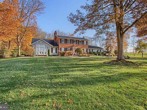 Cherished Traditions and Simple Pleasures are evident in this elegant country property. This one owner home has been lovingly maintained and tastefully expanded. A bright and cheerful sunroom was added in 1993 and an elegant 1st floor master bedroom/bathroom suite was added in 2000. A perfect blend of stone veneer and the original brick front create this exceptional two story home. The remodeled kitchen features granite countertops, center island, peninsula with a breakfast bar, hardwood flooring and flows nicely into the sunroom, which has 14 full length windows, transom windows and tongue and groove wood ceiling. The formal dining room has a built-in hutch, crown molding, & radiant heated hardwood flooring. A 9-lite glass door separates the foyer entrance into the living room. A full brick wall with a masonry fireplace with gas log insert create a cozy atmosphere in this room. Pocket doors on the other side of the room lead to a hallway into the 1st floor master bedroom suite. A cathedral ceiling, built-in bookcases, double sided gas fireplace to the upscale bathroom, patio doors to the exterior make this suite a tranquil retreat. A computer room, powder room and laundry complete the 1st floor. Upstairs you will find a second master bedroom for a total of 3 spacious rooms and two full bathrooms on this level. The lower level has 3 separate finished rooms, adding 1494 sq ft of living space. There is a central vac system, a security system, a reverse osmosis water treatment system, a water softener and neutralizer, newer solid mechanicals, two oil tanks, & a whole house generator. There is a two car, attached garage and a separate garage with 4 bays along with a new 4 stall horse barn built in 2022. The fenced pasture land makes this a perfect place to bring your horses. The back room of the garage with central A/C and heat, can be your man-cave, or use if to your discretion. The front stamped concrete walkway will lead you to the new porch that was added in 2023. The quiet, relaxing surroundings will make you feel at home. Property is in clean and green with low taxes.