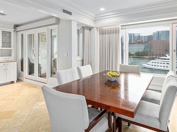 Beautifully renovated 4 bedroom, 3.5 bath home at Rowes Wharf, offering over 2,900 square feet of living space on two floors with southern exposure, four private balconies and amazing direct harbor views! The upper level consists of a newly renovated kitchen with granite counters/breakfast bar, custom built-in cabinetry & lighting, marble tiled floors and balcony overlooking the harbor. Spacious open living/dining room with marble tiled floors, oversized windows and incredible harbor views! The main bedroom has a sit-in area, balcony, huge custom fitted walk-in closet, exquisite bath with marble tiled floors, double sink marble vanity, whirlpool tub & separate marble shower. Guest powder room. The lower level consists of a large family room with hardwood floors, fully applianced kitchen, three bedrooms, two balconies, two beautiful marble baths, laundry & storage, two parking. Amenities include 24-hour concierge. Available hotel services, fitness center, restaurants.