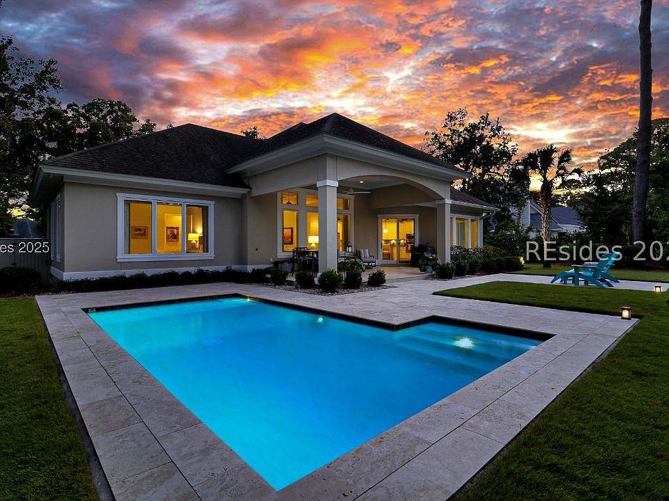 Experience refined coastal living in Port Royal, Hilton Heads only private oceanfront community. Custom-built by a local premier builder, this 4BR/4.5BA residence blends timeless craftsmanship w modern innovation. The current owners elevated it further by creating a resort-style heated & cooled pool and finishing the space over the garage into a private guest suite. Approx. 3,400 sq. ft., the home lives large w soaring ceilings, abundant light & an open layout designed for gathering. A welcoming foyer leads to flexible spaces including a dining/sitting room, a living room w stacked-stone fireplace, & a gourmet kitchen w gas range, counter seating & casual dining overlooking the pool & covered patio. The primary suite is privately set apart from two guest rooms, with a 4th upstairs.The insulated, climate-controlled 3-car garage with epoxy floor. Modern upgrades include a Tesla Power Wall III, backup generator, & future-ready solar design. Port Royal offers unmatched amenities private beaches, oceanfront pool, tennis, pickleball, leisure trails, and 24-hour security. In a community where opportunities like this are rare, this residence sets the benchmark for Port Royal living truly best in class!