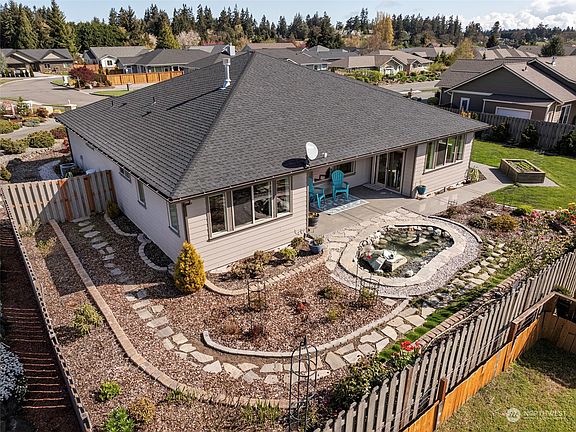 Absolutely Immaculate! Pride of the original owner emanates from this beauty offering 2166 SF of open-concept main living areas plus 3 Bedrooms, 2.5 Baths, 3-car Garage, with meticulous finishes and quality throughout. Kitchen boasts Quartz counters with generous island seating, hickory cabinets with pull-outs, pantry, and SS appliances with pot filler & propane range. Great Room with built-ins & fireplace with stacked stone surround plus South-facing Sunny VIEWS of the majestic Olympic Mountains. Energy-efficient Heat Pump for Heat & AC. Covered Patio with peaceful water feature and terrific privacy. Within Sequim City limits with close proximity to town amenities, beaches, golf and just a short walk to the Olympic Discovery Trail.