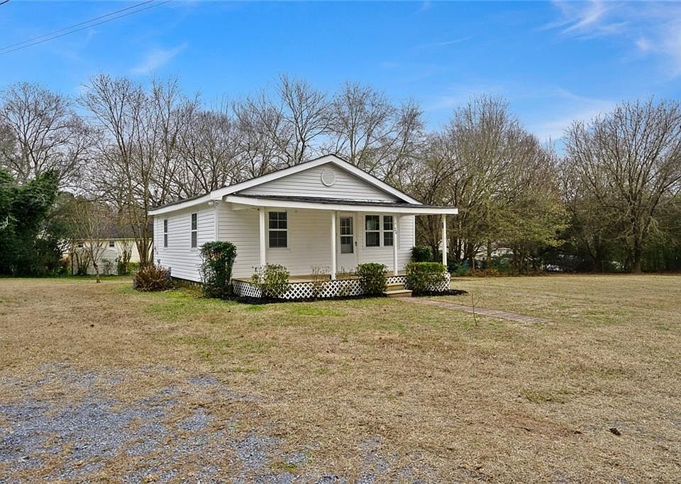 Charming country farmhouse nestled on a private 1 acre lot. Come inside to see this cozy 2 bedroom 1 bath, freshly painted home with new carpet in the bedrooms and gleaming floors through the main dwelling. This bright, airy, open floor plan boasts plenty of room for artsy decor and intimate living space. Step out onto your large covered rocking chair front porch. The oversized detached shop could be used as a garage space, workshop, or ample additional storage space. There is also an additional potting shed that could be perfect for a craft room, garden room, or even a chicken house. Take time to enjoy the shade tree on the property. Perfect for a big glass of sweet tea on a hot Georgia day. This whimsical home is available to see with an appointment. Please call to schedule a private showing!!