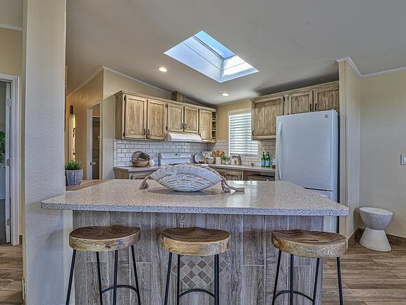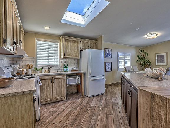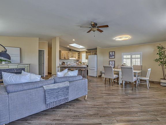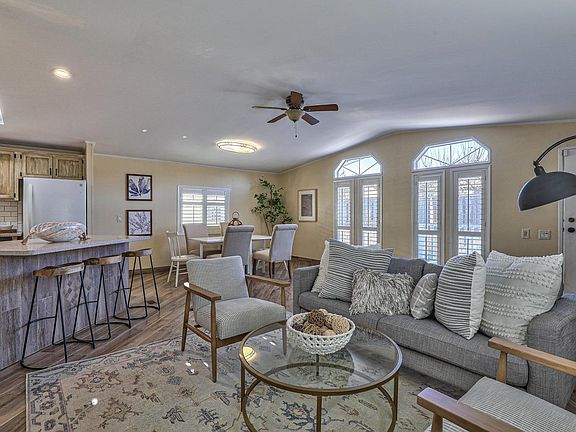 Tastefully renovated and delightfully spacious, this well-maintained manufactured home offers all the essentials in a convenient, easy-to-maintain package. New engineered tile floors, new plantation shutters, recessed lighting, and a comforting fireplace elevate the interior. The open floor concept and natural light flow into the kitchen featuring sleek Corian countertops and a central island for everyone to gather. A newer roof, a remodeled master bathroom, and a convenient location make this a must-see!