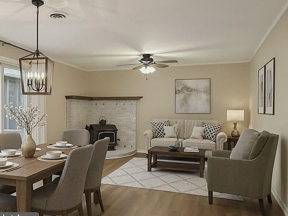 Welcome to this charming and well-maintained 4-bedroom, 2-bath rancher nestled in a quiet community with NO HOA. Situated on a cul-de-sac lot, this home offers both privacy and convenience with public water and sewer. Inside, you’ll love the beautifully updated kitchen featuring quartz countertops, stainless steel appliances, and a stylish tile backsplash. Enjoy two spacious living areas—one with a cozy corner wood stove—perfect for relaxing or entertaining. Step outside to a large screened porch and expansive back deck overlooking the fenced yard, ideal for outdoor gatherings. Additional highlights include a large garage and two sheds for ample storage space. This home combines comfort, functionality, and charm—all in a peaceful setting just minutes from local conveniences. *Some photos are virtually staged.