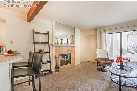 Love coming home to your sparkling remodeled condo with chic urban kitchen. Freshly painted interior, newer tile and carpet, and updated lighting. Modern open layout with great light from sliding glass doors leading out to patio. Bedroom has 2 large closets. Charming fireplace, extra storage closet, central A/C, all appliances included. 2 reserved parking passes, summer pool & year-round hot tub. Gorgeous grounds w/ walking paths - pet friendly complex. Easy access to Boulder/Denver/RTD.