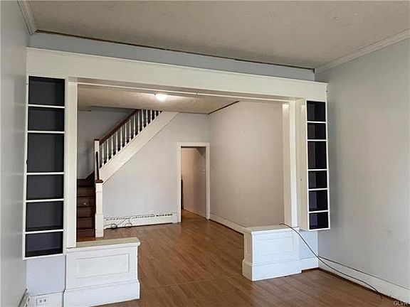 Great Starter Home or Investment Property in East Bangor is right here! Semi-detached home has 3 bedrooms and 1 1 2 baths. This home has so many great features, including a covered porch and a balcony off of the master bedroom. 10ft ceilings and built in shelving create a grand entry way into the first floor. The spacious first floor features a large living room, separate dining room, eat-in kitchen, mudroom and 1 2 bath. There is off-street parking behind the home that can accommodate up to 2 vehicles. Economical gas heat and a newer roof! Come see this home today!