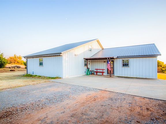 Home on 3.61 acres with beautiful view from covered back porch. Built in 2006 this custom 3 bed 3 bath home features two living areas with an open concept in main living area. The kitchen has a large walk in pantry. Living room has a vaulted ceiling. There are two bedrooms on the main level with one room and full bathroom upstairs. A sunroom is located off the master bedroom and exits onto the back covered porch area. Master bath has his/her sinks with his/her closets. It is also plumbed for a 2nd shower head if someone desired. There is a 20x40 outbuilding, 3 hydrants, 160' approximate well (water is very good) with a pressure tank. Water filter in home will stay. Hot water tank is 40 gallon Shed has peg board and electricity with lights. Woven wire fenced property perfect for livestock and/or horses. Large raised bed vegetable garden with irrigation, as well as a small and neat chicken house. Home is absolutely perfect for the hobby farmer. Far enough out of town to have space, yet close enough to Perkins and Stillwater for shopping and dining.
