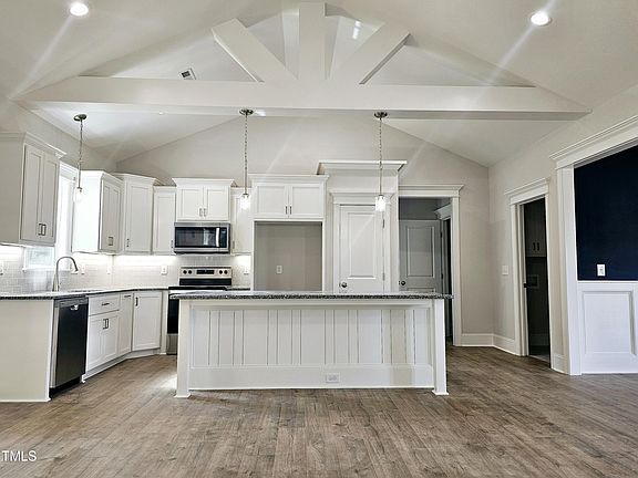 Welcome to ' Tarheel Landing' Subdivision! Beautiful new home with 3 bedrooms / 2 baths / bonus room / office or flex room / screened porch. #Interior features *entry foyer *tray ceiling w/ coffers & gorgeous trim work in the dining room *family room w/ gas log FP & cathedral ceiling *granite countertops, tile backsplash, eating/serving island, stainless steel appliances, & soft close white cabinets in the kitchen *laundry room with built in cabinets and tile floors *owner suite has tray ceiling, recessed lighting, walk-in closet, double vanity, garden tub, beautiful tile shower with glass surround & tile flooring *spacious secondary bedrooms #Exterior boasts *stone around garage door *large screened porch *sodded front yard *rocking chair front porch *finished 2 car garage