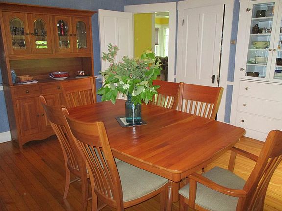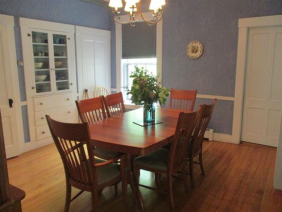 Lovely 1860's 4 Bedroom Victorian Village home on 2.43 surveyed acres. This fabulous historic home has many original features including breath taking tiger maple wood staircase, hardwood floors throughout, natural wood work, gorgeous pocket doors leading to large rooms with plenty of natural light, leaded glass windows, and 3 stunning fireplaces with one having an energy efficient pellet insert. Gorgeous updated kitchen with stainless steel appliances and Corian countertops. House is presently a very spacious single family residence, but could easily become a home with an in-law apartment with separate entrance. Outside is a large backyard, beautiful flower gardens, cute matching garden shed, and very convenient attached 2 car garage. Walk to all the amenities of beautiful Downtown Randolph right from your front door!