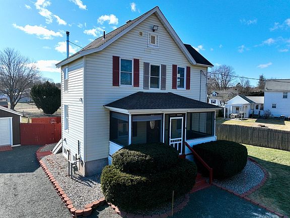 BOM due to buyer financing. Set back from the road you will find this pretty antique home. Sun-filled rooms beckon you and help warm your home in the cold months. Large bathroom, first floor laundry, spacious kitchen with generous cabinets and appliances that remain for the buyer's enjoyment. Three bedrooms upstairs. The main bedroom has a large walk-in closet that can be used to store your multiple seasons of clothing or shoe collection. Both an oil furnace as well as wood stove in the basement give you options and will keep you toasty. Front porch where you can relax, back porch where you can look over your fenced backyard with fire pit, above ground pool and hot tub. Oversized shed also has extra space for storage or workshop, or parking a car. Don't wait to make this home yours!