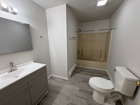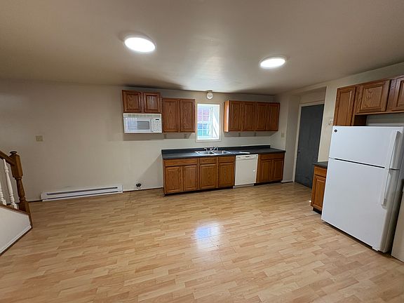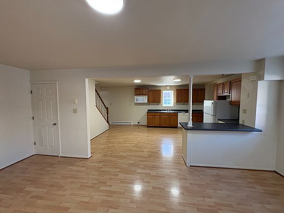 This unit is a 3-bedroom, 1-bathroom townhouse. It has a bright living area with updated lighting fixtures. The kitchen has ample cabinet space and each of the three bedrooms offer natural light and closet space. This unit includes a full basement with laundry hookups, electric baseboard heat, and two off-street parking spaces. Conveniently located near downtown shopping and dining this townhouse offers easy access to everything you need. *There is not a stove/oven in the pictures but one will be installed prior to the new tenant moving in.* The monthly rent does not include any utilities. All utilities are the responsibility of the tenant. No smoking allowed. Tenant is responsible for all utilities.
