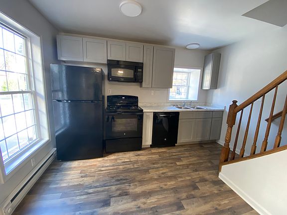 This unit is a fully remodeled 3-bedroom, 1-bathroom townhouse. It has a bright living area with brand new flooring, freshly painted walls, and updated lighting fixtures. The kitchen has been fully revamped with new countertops, appliances, and ample cabinet space. Each of the three bedrooms offers plenty of natural light and closet space. This unit includes a full basement with laundry hookups, central air conditioning along with electric baseboard heat, and two off-street parking spaces. Conveniently located near downtown shopping and dining this townhouse offers easy access to everything you need. The monthly rent includes the following utilities: water, sewer, trash, and electric. 12 month lease is required.