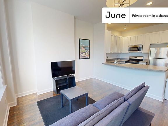 This Queen room in Near West Side is available on a 12 month lease or a flexible short term (31 to 364 days) lease. You pick your custom start and end date. Monthly rent rate is determined by furnishing preference, move-in date and move-out date. Speak to a June representative for recommendations on the best stay duration for the lowest rate.