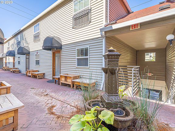 Charming European center courtyard with fountain leads to townhouse style 2-bedroom, 1 1/2 bath condo. Kitchen has stainless steel appliances and eating bar. Partially covered deck off of spacious living room. Second deck upstairs near bedrooms. In-unit washer & dryer. Plenty of storage! Secure building with intercom system for guest entry. Secure & private garage with deeded parking spot & storage. Just steps to MAX and close to the exciting new Rockwood Rising development!