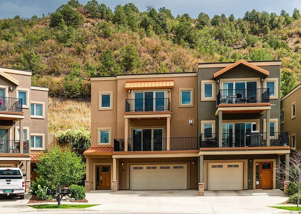 Discover the perfect blend of inspiring views and unbeatable location with this desirable townhome! Nestled at the end of a quiet cul-de-sac, this home offers stunning vistas of the La Plata Mountains and North Valley from both the main-level covered deck and a private balcony off the primary suite—rarely found with such convenience to town. Enjoy the privacy and tranquility of a large, fenced backyard featuring a flagstone patio, lush grass, and drip irrigation, backing onto a beautiful hill teeming with wildlife. Inside, you'll find elegant granite counters, cherry cabinets, and Douglas fir trim, complemented by all-new upgrades for 2025—including fresh flooring, paint, appliances, new water heater, lighting, preventive roof maintenance, landscaping, and a new sprinkler backflow system—all making this home move-in ready. The oversized garage offers ample storage with two additional storage rooms and extra space for a workshop or hobbies. Benefit from low HOA dues, city-maintained roads, and a low-maintenance lifestyle in Sage Hill, just a short stroll from fantastic local amenities like restaurants, a bakery, sushi, Mexican cuisine, a bike shop, and more. The property is fully owned, with HOA lawn maintenance in common areas, and offers a smart investment opportunity with varied layouts and designs across units. Enjoy leisurely walks along Florida Road’s wide sidewalk and bike lane, or take a quick stroll to the river trail. This townhome truly combines breathtaking views, modern updates, and prime location—schedule your tour today to see the views and lifestyle for yourself!