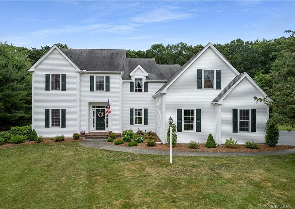 The home's setting is in a small cul-de-sac just minutes from beaches, downtown, and commuting. This 4 bedroom colonial with home office is ready for summer occupancy! The open floor plan is ideal in the kitchen and family room. You'll enjoy great features including the 9' ceilings on the 1st floor, vaulted ceilings, a 2-story stone wood-burning fireplace, and front and back staircases. The interior walls and ceilings have just been painted. The first floor has a laundry room with a utility sink. Beautiful crown moldings and Windsor wood trim compliment the first floor. The kitchen has Corian countertops and maple cabinets. A large eating area with windows overlooks the level serene yard and 20' x 40' inground pool with easy care patio surround. The second floor has 4 bedrooms (all with hardwood floors) including the primary bedroom which has a private office and a bath with a jetted tub, cherry cabinets, and double sinks. The bonus room could be used as a playroom, guest room or office. Recent updates include a whole house generator, a/c compressor, and a new refrigerator. 3 zones of heat and 2 zones of a/c. Enjoy the pool this summer and explore the beautiful town of Madison with its sandy beaches, great bookstore, movie theater, restaurants, and shops. Only 90 miles to New York City! Roof is a 30 year roof