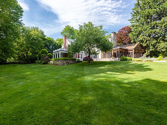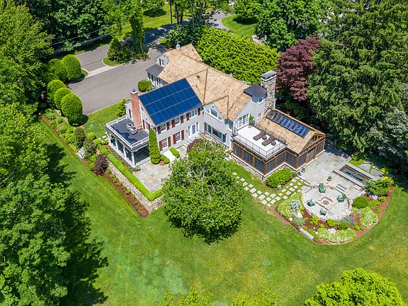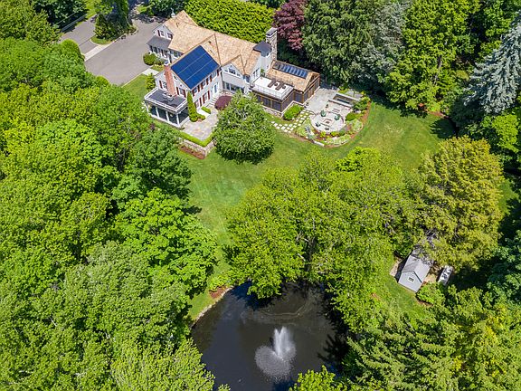 Located in one of Darien's most coveted neighborhoods, this renovated and expanded custom home is sited on a bucolic and picturesque 1.3 acre parcel. The intentionally understated approach unfolds to just under 8000 sq ft of striking architectural details and thoughtfully designed indoor and outdoor living spaces for family gatherings and gracious entertaining. Highlights of this 5 bedroom, 5 full & 4 half bath home include: a generously proportioned chef's kitchen with concealed appliances and butler's pantry; two offices; a stunning 3-season screened-in porch with cathedral ceiling, clerestory windows, stone fireplace and radiant heated limestone floor; lower level media room with cowhide acoustic panels and mini kitchen; dramatic wine cellar with imported French limestone racking and adjacent tasting room with handsome leather paneling and flooring; private au pair/guest suite w/separate laundry; 4-story elevator; new HVAC system 6/2020; whole house/property generator; Crestron and Lutron Systems. The professionally landscaped property takes advantage of the gently sloping lawn and view of the stream-fed pond with fountain. The terraced bluestone patio, an extension of the porch, includes radiant heated pathways, a plunge pool/spa, masonry fire-pit, and an exterior 1/2 bath. Move in and enjoy the summer at this exceptional home on beloved Saint Nicholas Road!