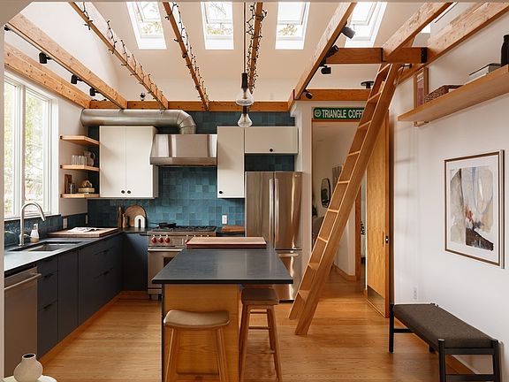 Perched on the third floor of a classic Cambridge building at the end of a rare cul-de-sac, this light-filled treetop penthouse—meticulously renovated in 2019—offers a tranquil retreat just moments from Central Sq. The home features two bedrooms, a full bath, and a versatile loft alcove—perfect for a home office, guest space, or creative retreat—framed by exposed beams and five southeast-facing, solar-powered Velux skylights. Solid ash floors, solid-core doors, and premium Schoolhouse finishes run throughout. The chef’s kitchen includes natural soapstone countertops, designer tile backsplash, 36” Wolf dual-fuel range, Kohler Prolific sink, eat-in island, and a large picture window. The open layout flows into sunny living/dining area and out to a private deck perched above the trees. With high-efficiency HVAC, in-unit laundry, parking, low HOA, and 100% owner occupancy, this move-in-ready home sits just blocks from the Red Line, Whole Foods, and all the vibrants offerings of Central Sq!