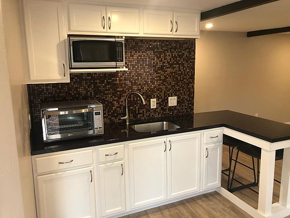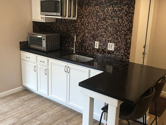 Fully remodeled studio apartment in very quiet, centrally located W. Sedona neighborhood next to Posse Ground park. This ground level unit is approximately 350 square feet and includes heat/AC, water/sewer, and WiFi plus extra storage in the garage. Parking is on the street in a cul-de-sac. Bathroom and kitchen have new wood-look plank tile and living/bedroom area has matching wood-look laminate flooring. Appliances included are a full size refrigerator, full size washer/dryer, microwave, mini dishwasher, 2 burner electric cooktop and extra large toaster oven. The washer/dryer is located in the garage attached to the studio and will be shared with the homeowners. The unit is unfurnished except for a pair of barstools and a built-in counter that doubles as food prep space and your kitchen table. The closet includes three closet organizers and a shelf to maximize use of the space. The unit is located in the back of our house under a rear deck so there is little noise transfer from your landlords living above you. Access to the unit is via a lighted paver walkway. The unit faces north to our completely forested peaceful back yard. The lot is over 3/4 acre so wildlife sightings (deer, javelina and coyote) are frequent. There is a small outdoor patio near the apartment entrance. We work from home so we are almost always on site and available if you have questions. Maximum occupancy for this unit is 2 people. Call to schedule a showing. Owner pays electric, water, sewer, trash, high speed internet. Tenant pays cable TV.