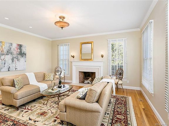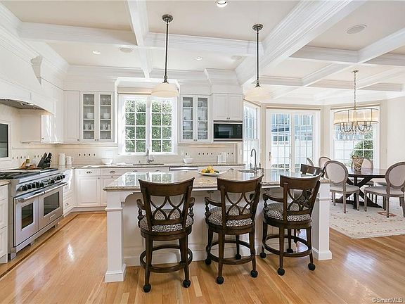 Westport's highly desirable Compo Commons neighborhood. End of cul-de-sac perimeter lot...PRIVATE and Level! This custom Georgian Colonial features 5 family bedrooms, 4 full and 2 half-bathrooms. Gorgeous, elite chef's kitchen with coffered ceiling, wet bar, FPL, walk in pantry and built-in TV with oversized island which adjoins the light and bright family room Step out to the rear bluestone patio with built-in grill and stone wall surround ! Ready to entertain casually outside or back inside the formal living room with fireplace and dining room which complement the more casual living areas. 10 foot ceilings, beautiful millwork and custom design details abound. Bonus room upstairs as well as another in the finished lower level. Go downstairs to exercise, play pool, or relax in this versatile recreation space with its own full bath. These welcoming rooms are ready for any hobby! The Belgain block lined drive leads to three car garage or neighborhood peaceful streets. Great for learning to bike ride and for peaceful after dinner walks. All this in a location just a mile from Main Street shopping, all transportation links, Longshore Club and Compo Beach! The Metro North train shuttle stops a few minutes walk away and is two minutes to the express station. Welcome to Compo Commons! BEST YET.......Natural Gas, City Water, City Sewer and underground utilities. A hard to find combination!