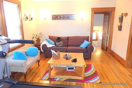 Located in fantastic Arlington Heights on the top floor of a 2 family home, this apartment is a rare gem! Featuring 2 bedrooms, formal living room and dining room, sunroom, office, and a huge Great Room with exposed beams and skylights! Hardwood floors throughout. Built in A/C. Eat in kitchen with dishwasher and in unit laundry! Yard access and 2 off street parking spaces included. Available 3/1/15