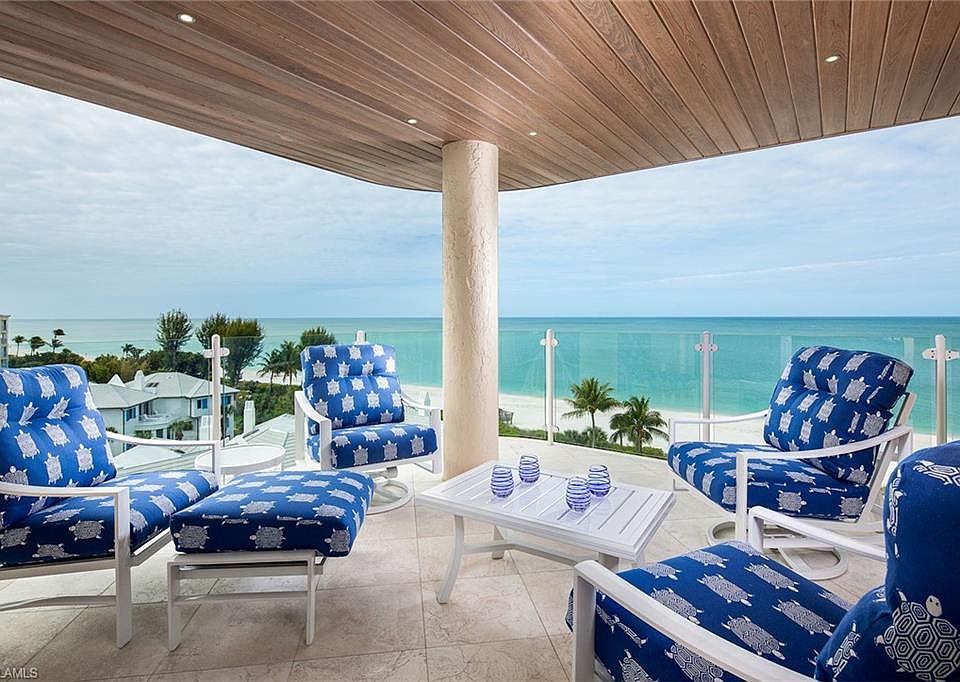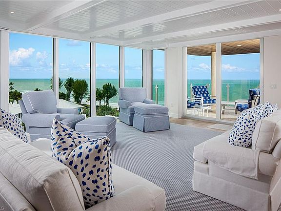 Wrap-around views from floor-to-ceiling windows make this 01 stack in the Beach House at Naples Cay a total WOW. And that is before you see the outstanding remodeling - a classic beach house feel with exquisite taste. Expansive living room and dining room with southwestern view to the Gulf, an eastern family room with electric fireplace and built-in work/study space, a glass-paneled balcony for enjoying the sunset, and the master bedroom suite with stunning beach views. The kitchen is the heart of the condo, with an extensive butler's pantry with freezer and refrigerator drawers, Fisher-Paykel dishwasher, and a beautiful island workspace with glass-fronted custom cabinetry. With the beach walk right at your feet, and the assorted amenities of Naples Cay close at hand (pool, tennis, fitness center, dog park) you'll enjoy all that the low-density Beach House has to offer. An enclosed garage and an additional parking space in the covered deck complete the picture. This unit has that open feeling that everyone is looking for in the new coastal contemporary homes.