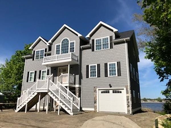 Touisset! Spectacular unobstructed views from this waterside 3 level contemporary with an open floor plan featuring an impressive 2 story foyer, a great room, a 1st floor master suite - ideal for one level living and a fully applianced kitchen with a center island/breakfast bar & stainless steel appliances. A french door leads to the waterside deck. The second level has an additional master suite with a tray ceiling & a large private bath with a walk in shower. There are 2 additional bedrooms, a large office/study, an additional full bath and a workroom/gym. There is additional room for expansion on the lower level which affords many possibilities. Construction is almost complete! Exterior staircase & pavers in the process of being installed. Hardwood flooring in the 2nd floor bedrooms & a gas fireplace are optional. Elevator provision available.