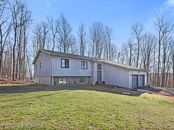 If you are looking for privacy and land but want to be a quick drive to main roads, this is the home for you. This beautiful, comfortable home sits back off the road on five acres of wooded land. There have been many upgrades over the past five years including new well and septic pumps, tankless water heater, chimney and fireplace. This 3,200 square foot 4-bedroom 3 bath home does not lack for space. With 3 bedrooms and two baths on the main floor along with kitchen, living and dining room, you can live comfortably on the main floor without having to go up and down stairs to get to your bedroom. The living and dining room's large windows bring in light, but the house remains comfortable and cozy. You'll get to see the beauty of autumn leaves changing colors while sitting at your dining room table. Watching snow fall in the winter while sitting by the fireplace is romantic and enchanting. The lower level has a bedroom and full on-suite bath perfect as an in-law or guest suite. Windows and patio doors bring in light to the lower level and make it feel very spacious. For animal lovers there is a chicken coop and invisible fence. Start the morning with fresh eggs while your dog enjoys the back yard. The wrap around porch is perfect for outdoor entertaining in the spring and summer, grilling, serving fresh food from the garden, bird watching and relaxing. Nature surrounds this home. The home is five minutes to the elementary and middle school in North Pocono School District, twenty minutes to Scranton, 30 minutes to Mt. Airy Casino, Tannersville Outlets, many water parks, and approximately 45 minutes to the Delaware Water Gap. Showings by appointment only. All information is deemed reliable but not warranted or guaranteed.