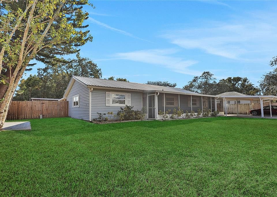 MOVE-IN READY HOME IN BABSON PARK! This 4 BD/ 2 BA house is situated on a corner lot with a privacy fenced backyard, 2 screened porches and a big carport. The interior of the home has beautiful porcelain tile floors and stone countertops throughout; the classic neutral shades give a bright crisp style that can perfectly compliment your furnishings, or, be perfect for adding your own personal touches. Welcoming is a screen front porch into the spacious living & dining combination with double doors expanding the space out to the screen lanai that overlooks the backyard. The beautiful kitchen has light cabinets accented with lovely granite countertops, stainless steel appliances, recessed lighting and a pantry. Step into the owners’ suite that has dual closets and the en suite provides a walk-in shower and single sink vanity. The 3 additional bedrooms are oversized and have use of the principal bathroom that provides a bathtub and single sink vanity. Both screen rooms have adorable quarry tile flooring and both are covered; the front porch connects to the carport keeping you dry when a Florida rain cloud pops open. The back porch is an enjoyable shady spot to enjoy morning coffee or evening. The big backyard is entirely privacy fenced and it has dual gates and a parking pad for entry. There is a chicken coop in place and a spacious building for use as a workshop and storage. The peaceful, quaint community of Babson Park sits along the shore of beautiful Crooked Lake, just 6 miles to Lake Wales and close to Frostproof. A marina is in close proximity to this home, so bring your watercraft to take advantage of boating, skiing and fishing! This great home is ready for new owners to take possession and enjoy all that it offers!