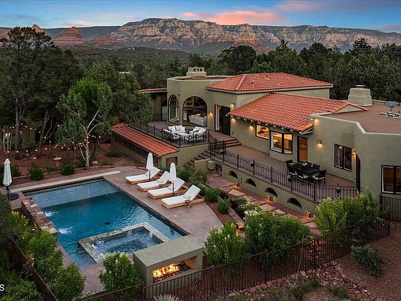 Welcome to Shadow Rock. Just appraised at 4 million! This beautifully designed custom home is nestled on a large .87 acre corner lot with stunning views of coffee pot rock. Listed at 6,165 sq ft, including a 1,610 sq ft attached guest house, 5 bedrooms/ 4.5 bathrooms, and a 3 car garage. As you walk through the foyer you are immediately greeted by soaring ceilings, a timeless interior remodel and large floor to ceiling windows framing the Sedona red rocks. The main floor is an entertainers dream with an open concept, recently remodeled gourmet chef's kitchen, large kitchen island, and views from every window. The master bedroom won't disappoint with features like a brand new spa like bathroom, dual vanities, walk in closet, soaking tub and an enormous shower. This split floor plan is extremely functional with the master on the main and the other bedrooms on the floor below. The lower level offers 3 spacious bedrooms with walk in closets, 2 bathrooms, a great room and an office or multi purpose room. The 1610 sq ft permitted guest house is a space that can adapt to your needs. Whether you have guests visiting, need a separate office, or want to generate passive income as a rental, this guest house can accommodate it all. Featuring 1 bed/ 1 bath/ plus den, full kitchen, laundry, soaring ceilings, great room, large windows, incredible views and a separate private entrance. The back yard embraces outdoor luxury with an expansive patio that extends across the back of the home overlooking the newly constructed sparking pool and spa, gas fireplace, green space with artificial turf, mature landscaping and panoramic views of the Sedona red rocks. Located in the highly sought-after Soldier's Pass Corridor you are steps from breathtaking hiking and biking trails, minutes to shopping, dinning and all that Sedona has to offer. Don't miss this rare opportunity to own a Sedona gem in Shadow Rock Estates.