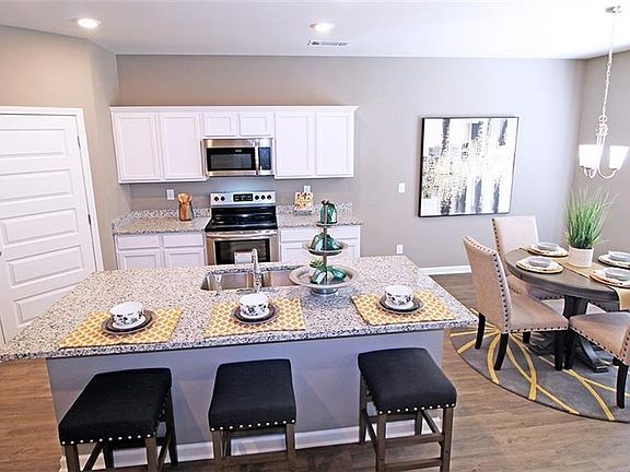 • Kitchen Features: Breakfast Bar, Eat-in Kitchen, Pantry, View to Family Room, Kitchen Island, Solid Surface Counters
