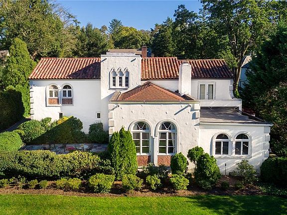 Upon entering this chic villa, you will feel as if you've been transported to Europe on a Mediterranean holiday yet, you are in the very heart of exclusive Fox Meadow! Replete with character & exquisite architectural details, you will fall in love with this majestic residence. The spectacular formal living room features arched tall glass doors to a private courtyard perfect for elegant entertaining. The soaring wood ceiling & dramatic fireplace highlight the room's grandeur. Celebrate in the exceptional formal dining room or enjoy quiet evenings in the chic family room with idyllic property views. An airy eat-in kitchen, generous office/bedroom, full bath & powder room complete the main level. A grand staircase leads to a landing with dramatic cupola, 3 spacious bedrooms & 3 full baths, including a sun-filled expansive master suite. Perfectly located within a short stroll to Fox Meadow Elementary School, Scarsdale High School, & Metro North, this Mediterranean masterpiece has it all!