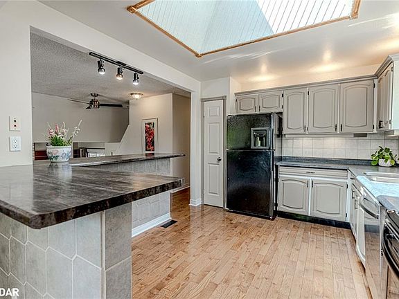 MOVE-IN READY SIDESPLIT WITH AN INGROUND POOL & BACKYARD PERFECT FOR POOL PARTIES & PATIO NIGHTS! Get ready to live loud and love every inch of this bold sidesplit in Barrie’s buzzing west end. Sitting proudly on a 60 x 110 ft corner lot, this home doesn’t just offer space; it delivers the lifestyle you’ve been chasing. Imagine warm summer days spent poolside, with the inground pool glistening under the sun, a pergola-covered deck for shade and cocktails, and a garden shed ready to stash all your backyard gear. The exterior features a mix of brick and siding, decorative shutters, mature trees, and well-maintained landscaping. No sidewalk means easier maintenance, and the attached two-car garage, along with a four-car driveway, offers plenty of convenient parking. Inside, natural light floods through oversized windows, illuminating the open-concept kitchen, dining, and living areas where hardwood flooring adds warmth and charm. The skylight brightens up the kitchen, where you’ll find a tile backsplash, a double sink, neutral cabinetry, a pantry, and a large L-shaped breakfast bar that’s perfect for sharing apps, chatting with guests or gathering during a party. A spacious family room adds extra comfort with a wood-burning fireplace, bay window and a walkout to the deck and pool. The primary bedroom is its own private retreat, featuring an ensuite and walkout access to a raised deck overlooking the backyard. Downstairs, a finished basement brings even more room to roam with a large rec room perfect for movie nights, playtime or workouts. Just minutes to Highway 400, schools, parks, shopping and daily essentials, and steps from Lampman Lane Community Centre with its gym, splash pad, courts and playgrounds. This is more than a #HomeToStay; it’s where memories are made, cannonballs are encouraged, and life doesn’t skip a beat!
