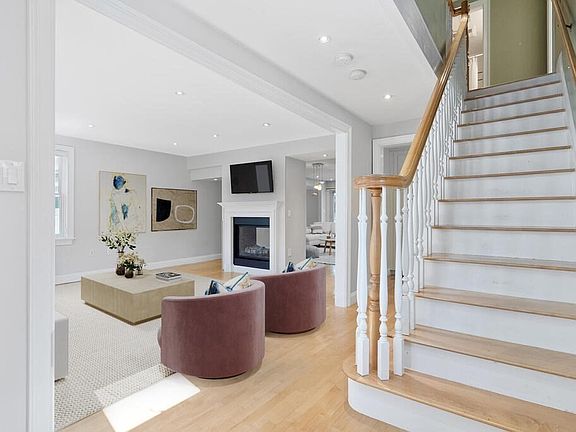 Beautifully renovated and meticulously maintained Colonial home corner lot, just moments to Lexington Center. This charming single family home boasts an inviting farmer's porch and professional landscaping. Entry foyer welcomes you to an open floor plan featuring hardwood floors, vaulted ceiling family room, and two-sided gas fireplace shared by living and dining rooms. Expansive, renovated eat-in-kitchen with wood cabinetry, large island, and pantry closets offers a special place for meal prep and gathering. Broad picture windows in family room provide endless enjoyment of sun-drenched patio, backyard and tiered gardens. Second floor features a spacious primary bedroom complete with spa-grade bathroom plus three additional bedrooms and full bath. The completed third floor offers the 5th bedroom, a full bathroom plus office or den. Newer furnace and hot water heater, 2016 roof, and Tesla electric car charger, enhance this classic home for today's modern living.