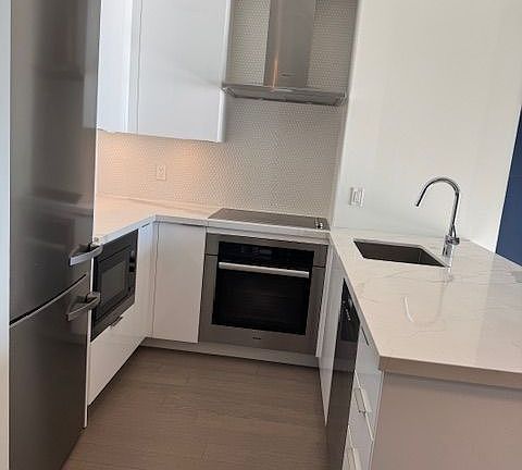 Welcome to Eau Du Soleil Condos at Lake Shore & Park Lawn! This elegant 1+Den suite sits high on the 43rd floor with unobstructed southeast views of the lake and Toronto skyline. The unit features premium upgrades throughout, including quartz stone countertops, stainless steel appliances, modern cabinetry, and a spa-inspired full marble bathroom. The versatile den offers the ideal space for a home office, dining nook, or guest area. Enjoy resort-style living with world-class building amenities such as a rooftop terrace, indoor pool, gym, yoga studio, theatre room, party room, games room, and 24-hour concierge. Perfectly located steps from the waterfront, Humber Bay Park, restaurants, cafes, shopping, and transit with quick access to the Gardiner Expressway. Parking and locker included! Enjoy premium unique features not available to most: wine storage locker & cigar humidor in the private water lounge.