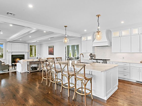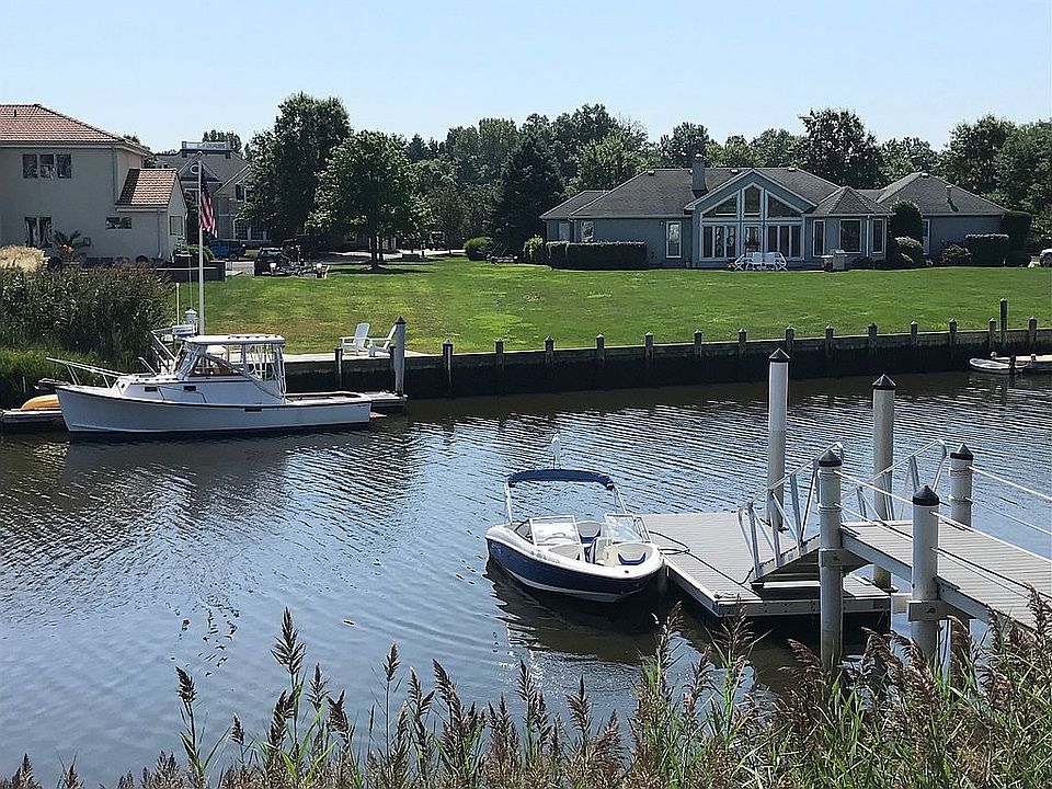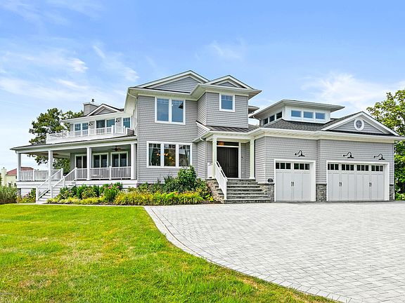 Waterfront Home with panoramic views on coveted Gooseneck Point in lovely Oceanport! This custom built 4 Bedroom, 2.5 Bath home was completed in 2017 and is situated on a great size lot and features a desirable open floor plan with water views from every room, high beamed ceilings and windows that let in an abundance of natural light, built-ins, high efficiency gas fireplace, wet bar, decorative molding, and hardwood solid oak floors throughout. Stunning gourmet Kitchen boasts an accommodating center island, custom cabinetry, quartz countertops, and high end stainless steel appliances. Sliding doors from the Kitchen and Living Rooms lead to a beautiful wrap around covered porch that is perfect for entertaining and relaxing while watching beautiful sunrises and sunsets over the water. Master Suite features custom walk-in closets with built-in desk, sliding doors to a private balcony and spa-like Master Bath with double sinks, glass enclosed shower, and soaking tub. Enjoy the home's outdoor oasis that includes a newly built dock on a quiet cul-de-sac water channel with boat lift and permit for a jetski lift. Additional amenities include a Family/Entertainment Room that is equipped with surround sound, high efficiency cooling and heating with 4 zones, wifi and app-enabled thermostats with whole house air filtration, full house generator, energy efficient windows, 2nd floor laundry, oversized 3-car garage that can fit a medium size boat and two cars, circular paver driveway with plenty of parking space, and unfinished bonus room that can be converted to a media/game room, play-room or used as a 5th bedroom. Close to beautiful beaches, shopping, restaurants, and top rated schools. Convenient commute to NYC via high speed ferry, train, bus, or GSP. Don't miss the opportunity to live in this wonderful home, call today!