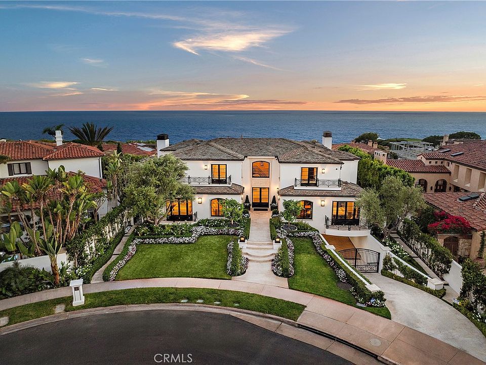 CREATIVE FINANCING AVAILABLE. INQUIRE FOR DETAILS. Indulge in the pinnacle of luxury living with this extraordinary estate in the exclusive gated Pelican Point community where the sound of white-water waves crashing on the shore and the sighting of whales and dolphins are just part of a normal day. Offering unmatched privacy and the most expansive view frontage in the area, this property is a sanctuary of refinement. Masterfully rebuilt in 2009 and meticulously updated in 2024, this custom residence epitomizes neoclassical grandeur with an eye for modern elegance. Boasting five spacious bedrooms and eight bathrooms in 7,300 +/- square feet on a 13,000 +/- square foot lot, the home effortlessly blends formal and informal living spaces. Every inch has been crafted with unparalleled attention to detail, featuring rare, hand-selected stones and hardwoods, artisan-crafted surfaces, and solid wood finish carpentry. The property is adorned with designer lighting and fixtures, top-line appliances, dual staircases (formal and service), and a convenient elevator reaching all three levels. The interior space is a masterclass in updated elegance, offering a seamless flow between rooms that enhances both sophistication and comfort. Every window frames a picturesque vista, ensuring that the ocean’s splendor and the captivating sunsets are always within view. Enjoy cinematic experiences in the state-of-the-art cinema room or entertain in style with a sophisticated wine cellar that holds over one thousand bottles, all within an ambiance of contemporary sophistication. Step outside to find an exterior as breathtaking as the interior with an uncommonly distinctive front curb appeal and lush, manicured grounds that envelop the estate, highlighted by a 128-foot terrace of exquisite French limestone. Dive into the sparkling knife-edge swimming pool, clad in luxurious Italian granite slabs, while savoring the panoramic views of Newport Coast that stretch as far as the eye can see. Additional features include a finished garage with space for three cars and a separate gated drive accommodating five more vehicles. With guard-gated security, private direct beach access, and proximity to the region’s most coveted amenities, Pelican Point provides an unparalleled lifestyle as the only gated community in Newport Coast where you can hear the ocean waves. This estate is more than a home; it’s a gateway to a life of luxury, combining timeless elegance with spectacular natural beauty.