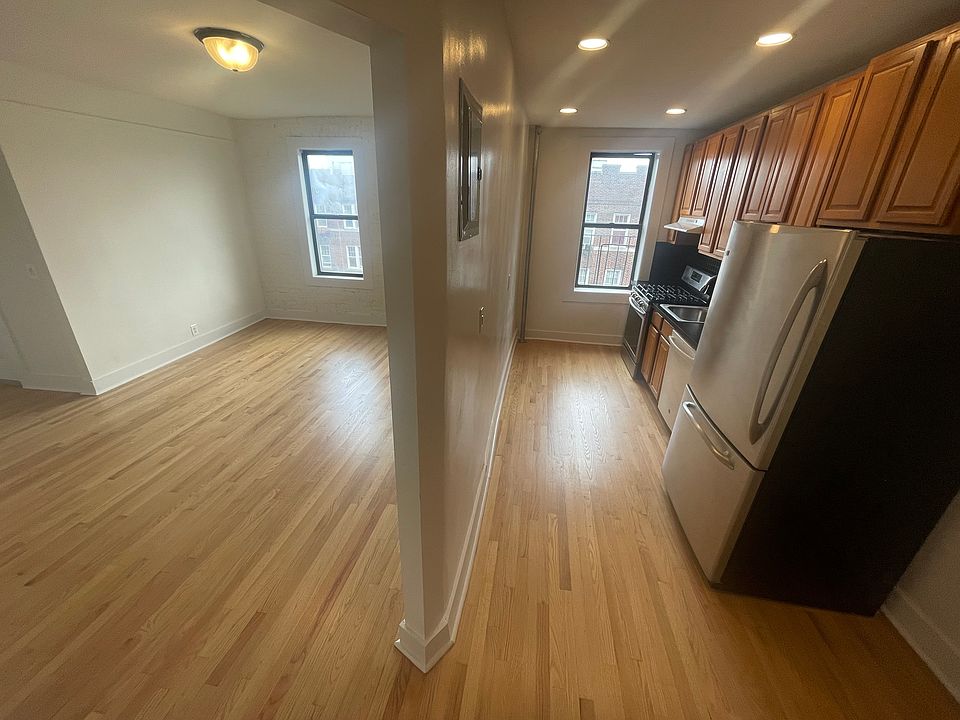 * Stunning 1 bedroom on a 5th floor walk up * Newly renovated to its original details Features: Hardwood Floors Huge stainless steel kitchen with its dishwasher and microwave Extra Sunny with tons of big windows Huge King size bedroom Large living room Extra Closet space Washer and Dryer units in basement Brokers Fee unit 2 year lease ** SEE VIDEO OF UNIT ON THIS AD*