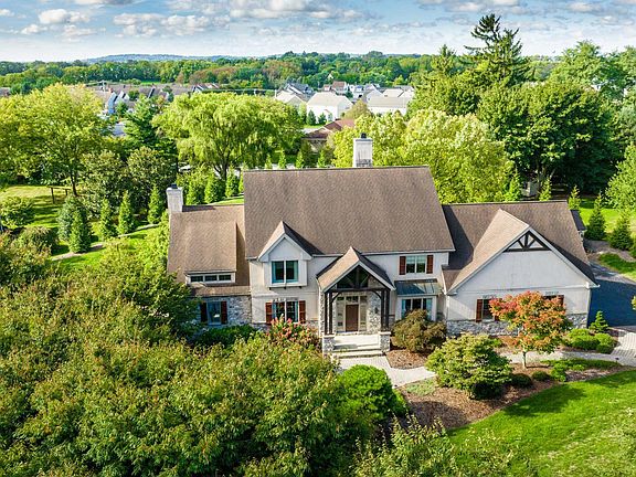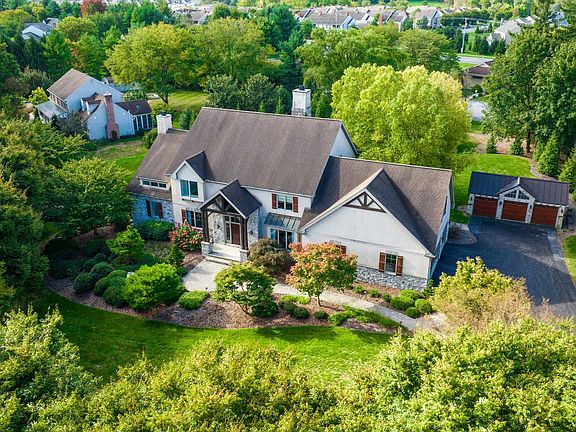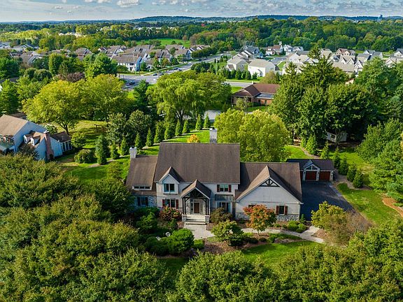 In the heart of Manheim Township, and located in the exclusive development of Stonehenge, this beautiful custom home sits on 1.4 acres and offers over 7,000 square feet of luxury living space. Close to shopping, restaurants, and downtown Lancaster, find this inviting oasis filled with surprising features and details. Enter the lodge-style entrance into a delightful blend of elegant and glamorous design. A grand entry, gleaming hardwood floors, and an open stairway lead to the great room ready to take your breath away, yet grounded by the massive stone fireplace and intimate seating. Light pours in through the extensive windows making the space airy and bright. The two-sided fireplace reaches from floor to ceiling, drawing your eyes to its magnificent structure. It casts warmth to both the great room and the kitchen. Antique finished cabinets, granite countertop, tile backsplash, a pot filler and instant hot water on tap make this gourmet kitchen a dream to cook in. Pour your favorite French roast and curl up on a chair in the breakfast nook overlooking the backyard. In the dining room, a spectacular chandelier and copper ceiling leads your imagination to dream of dinners and guests, celebrations and holidays. Step across the foyer into the “viby” bourbon lounge with dark paneled walls and metallic ceiling, inviting you to stay for cards, conversations and cocktails. The owner’s suite, a sanctuary of light and warmth, offers a place to rest and relax with its cathedral ceiling, skylights and French doors onto the patio. Slide into the clawfoot tub or step into the jetted shower in the ensuite bathroom. Feel the warmth of the heated floors on your bare feet. On the second floor enjoy another spacious primary bedroom and bathroom with a walk-in shower, two bedrooms sharing a bathroom, and another bedroom with a loft, window seat and private bath. The lower level is an entertainment paradise. Serve up all your favorites at the fully outfitted bar with a wine fridge and place for your kegerator. Host a movie night in the private movie theater with plenty of seating for family and friends. Play games in the large open area or lounge with your favorite book on a rainy day. There is a craft room for all your projects, another full bathroom, and a handicap entrance on this level. Outside, manicured lawns and landscaping surround the home, and a patio dressed with wood and stone columns offers the perfect summer setting.