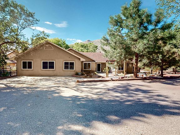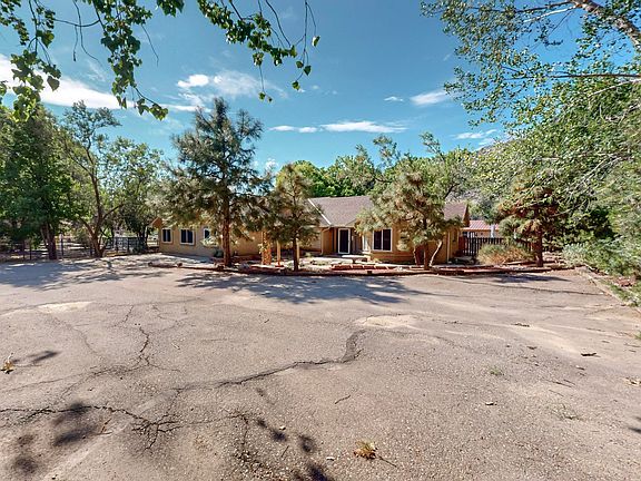 Feel like your in the country but only minutes to Downtown Albuquerque, World class hiking and biking trails. This is a wonderful country estate with cottonwoods and even a seasonal stream running though it right in your backyard.. A short drive from Tramway and Central to Carnuel. FOUR CAR GARAGE - MOUNTAIN VIEWS - 1.32 ACRES OF LAND. Don't miss this wonderfully unique home. Updated kitchen with Alderwood cabinets, stack stone backsplash, granite countertops and a large kitchen island. Jenn Air appliances, refrigerator, gas stove, BOSCH dishwasher and microwave all convey. Walk in pantry. Two walk up attic spaces in the house. Three large bedrooms all with walk in closets plus a study.