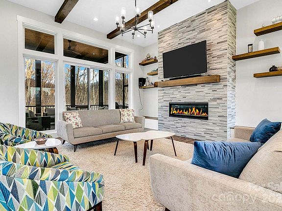 Step into luxury with this stunning 3,100+ sq. ft. home, built in 2022, offering 4 spacious bedrooms and 3.5 bathrooms. This home boasts 12-ft ceilings, creating a bright, airy atmosphere throughout. The open-concept living space is anchored by a gas fireplace, perfect for cozy evenings, while the gourmet kitchen features a walk-in pantry, oversized kitchen island and premium finishes, ideal for entertaining. The primary suite is a private retreat with a spa-like en-suite bath and a generous walk-in closet. An additional bedroom upstairs with its own en-suite bathroom provides ample space for family or visiting guests. A central vacuum system and a three zone HVAC system adds convenience. Step outside to enjoy the screened-in back porch, a perfect spot to relax and take in the stunning surroundings. The beautiful backyard complete with a brick fire pit for cozy evenings under the stars. Need storage? The extra-large basement storage area provides ample space for all your needs.