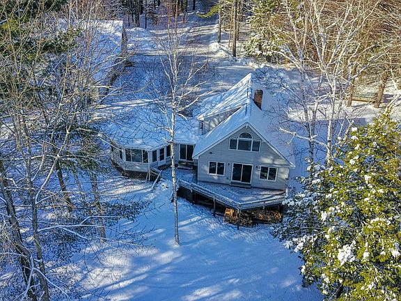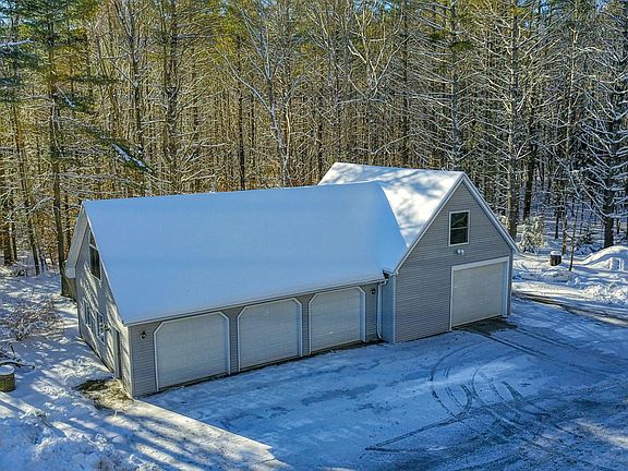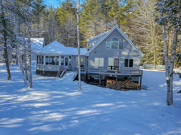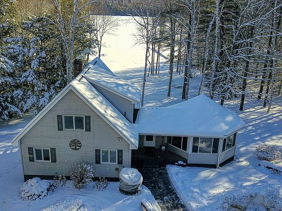 SALMON LAKE: Nestled on 9+ private, tranquil acres of wooded land, this charming, warm and inviting year round home, with 269+/- feet of owned water frontage on a serene cove, has so much to offer! The owners installed a custom 100' aluminum dock, ideal for parking your boats, swimming, or fishing from! Enjoy the water views and breathtaking sunrises or sunsets from your spacious deck or while gathering with guests in the attached 20'x20' 3 season gazebo. With 3 bedrooms, 2 full bathrooms, and extra bonus room in the finished basement, there is no shortage of living space or storage! Some improvements include granite countertops, heat pumps, asphalt driveway, oversized garage bay, flooring, paint, new composite deck boards and more! The immense, heated 4 bay garage comes equipped with tons of storage space and room for expansion above if desired. If you have been searching for a year round, meticulously maintained home in the Belgrade Lakes region, look no further! You won't want to miss this opportunity!