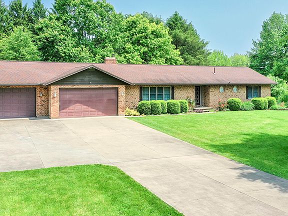 Enjoy the peace of country living in this spacious 3-bedroom, 3-bath brick home nestled on a scenic 1.4-acre treed lot. The inviting living room features a cozy brick fireplace and neutral carpeting, while hardwood floors flow through the kitchen, dining room, and foyer. The updated kitchen offers beautiful oak shaker pegged cabinets, tile countertops, and a warm, functional layout.