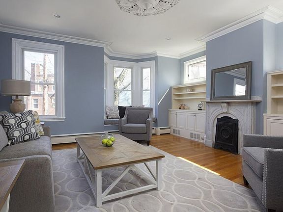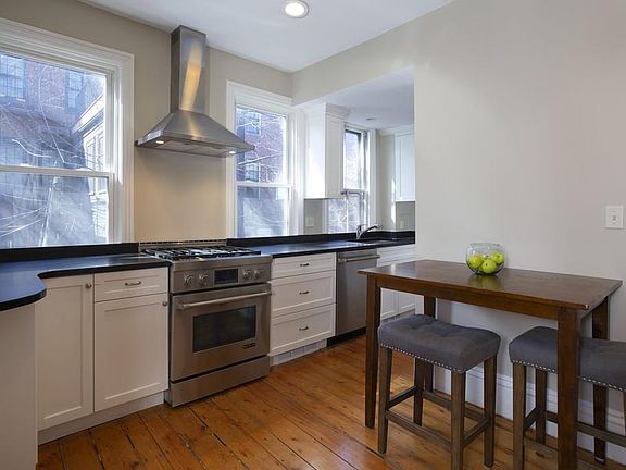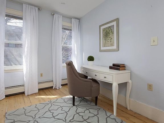Located on one of Charlestown's most sought-after gas lit streets & steps from best restaurants, shops, Whole foods &t he "T", this 2 bedroom penthouse overflows with character & offers private roof deck w/stunning city views & recently ren, bath. The stylish white kitchen w/white shaker cabinetry adorned w/honed granite, ss, appliances incl. Jenn air range & hood & wide pine flooring. Spacious living overflows w/natural light from window on 2 sides incl. a bay window & boasts hardwood flooring, crown molding & marble mantle flanked by custom built-ins. The expansive master bedroom has wall of windows allowing for ample natural light, hardwood flooring, white wood mantle and large closet for ample storage. The newly renovated bath features 12X24 grey tile flooring, extra deep tub with subway tile surround and white vanity. The private roof deck w/breathtaking city views. With in-unit w/d & just steps to Charlestown's center, this is the one you have been waiting for!