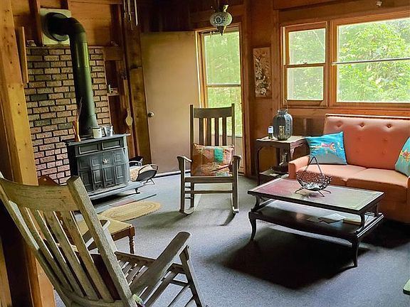 Simplify, Simplify! Thoreau himself would have enjoyed this sturdy cabin on a pine scented hill. Used as a weekend getaway, the house is BYO water and LED lights. All the conveniences with none of the utility bills. Deeded rights to nearby Mombaccus Creek and swimming pond.