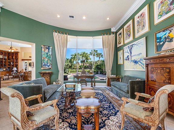 Welcome to this Custom Built Estate located in the exclusive Coquina Estates of BallenIsles! Spacious 4 BR / 4.5 BA with over 3,300 square feet of living space. Expansive driveway leads you to a glass enclosed double door entry. Step into the bright and airy high ceiling, open/split floor plan offering the best of the open concept feel combined with some degree of room separation. Foyer and formal living room feature floor-to-ceiling windows showcasing breathtaking views of the outdoor patio, pool and spa. Enjoy panoramic views of the 15th fairway of the BallenIsles South Course. Host guests for dinner in the elegant dining room to the left of the entrance foyer. Move into the Kitchen with center island which opens up into a very large family room with custom (SEE MORE)... built in wall units and wine cabinet. Eat-in-breakfast/dining area completes this open concept area also with views of the outdoor space via curved windows and sliding glass doors. Expansive Primary Bedroom Suite includes a large sitting area and fabulous views of the pool and outdoor patio, 2 large walk in closets, shower and jetted tub, dual sinks and separate makeup vanity. All 3 guest bedrooms are en-suite and one also serves as a cabana bath. A half bath is situated near the main foyer/formal living room. Lushly landscaped backyard features a heated pool with raised spa. Part of the outdoor patio and summer kitchen is enclosed with floor-to-ceiling structure with dedicated air conditioning allowing for time outside of the home and protection from the elements. Very large 2-3 car garage with multiple storage areas and plenty of room for golf cart(s).